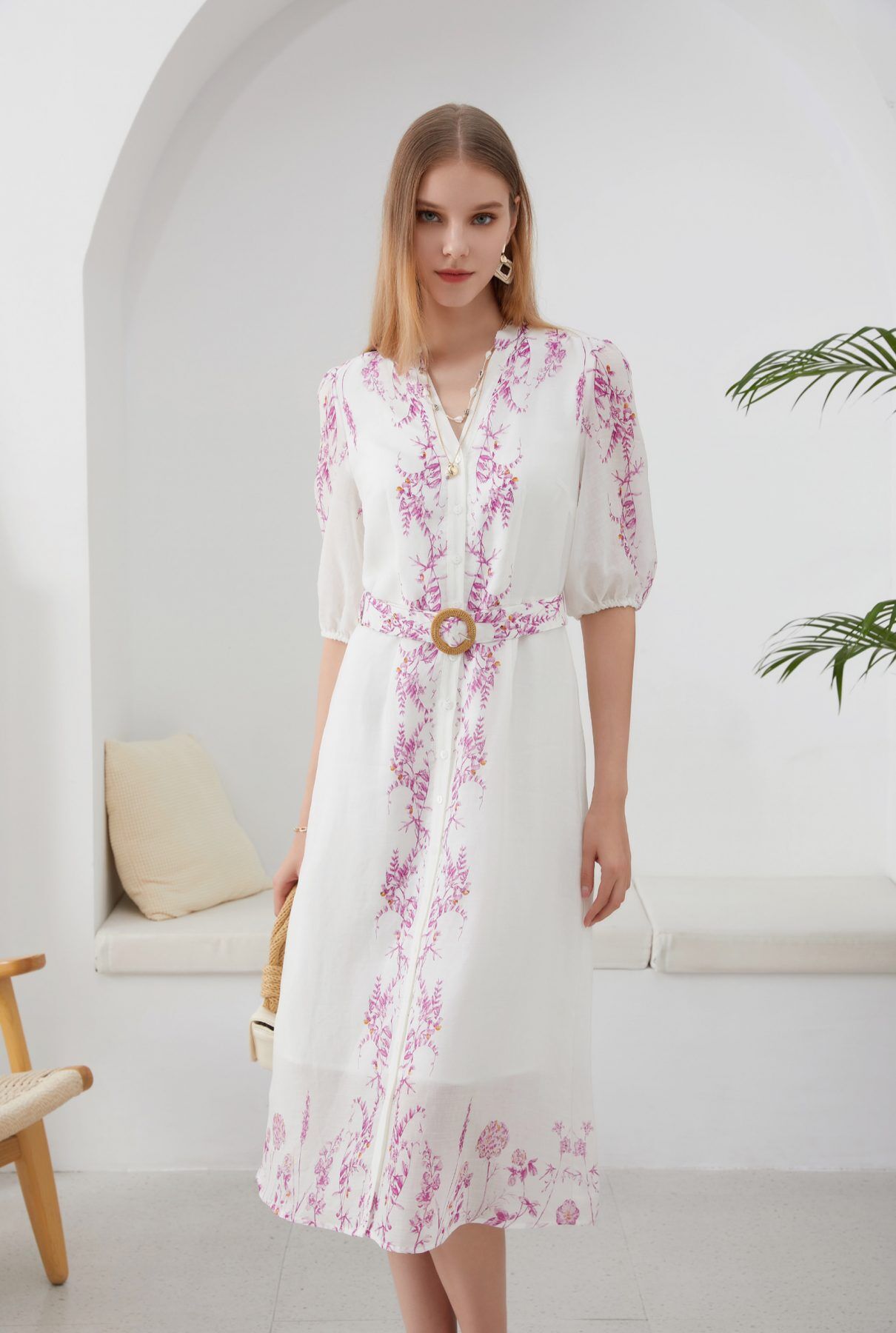 Nicolette belted dress lends itself to a romantic edge. Stunning with its floral print, soft linen/ Tencel fabric adds to the light wearable comfort. Perfect for any occasion from day to evening.